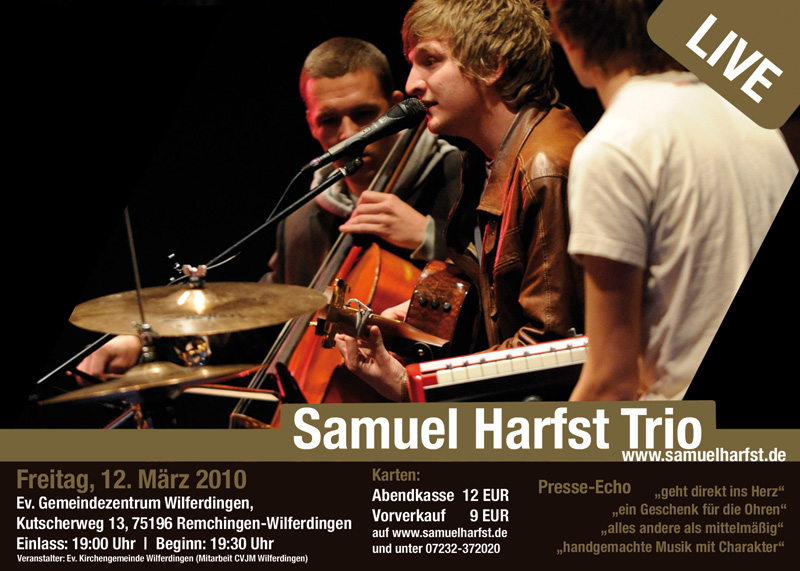 Kosten: 9 VVK | 12 EUR Abendkasse bei Rainer Zilly, Tel. 07232/372020 oder www.samuelharfst.de